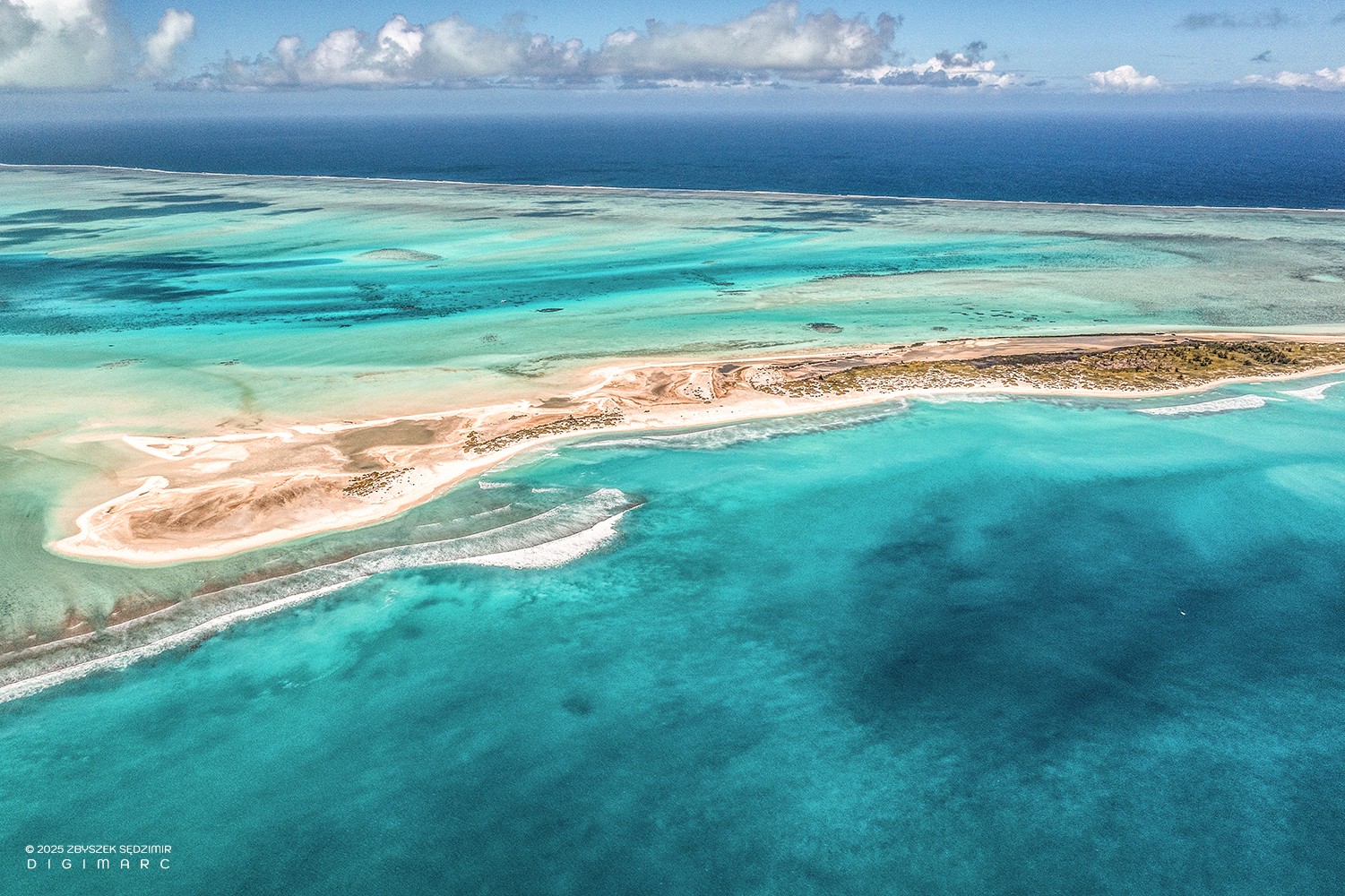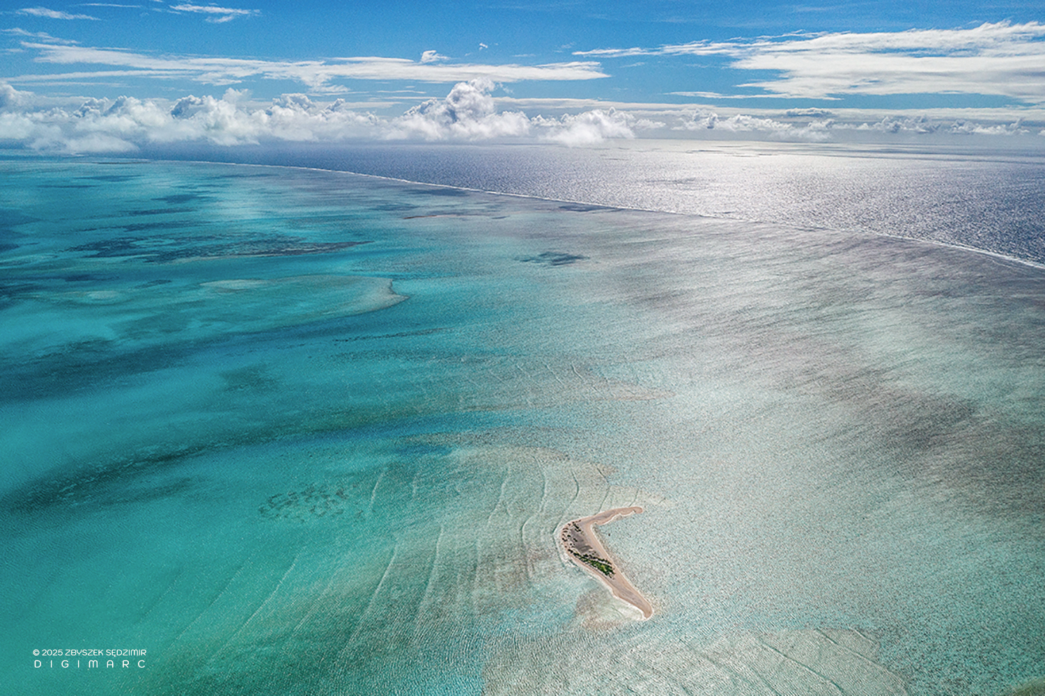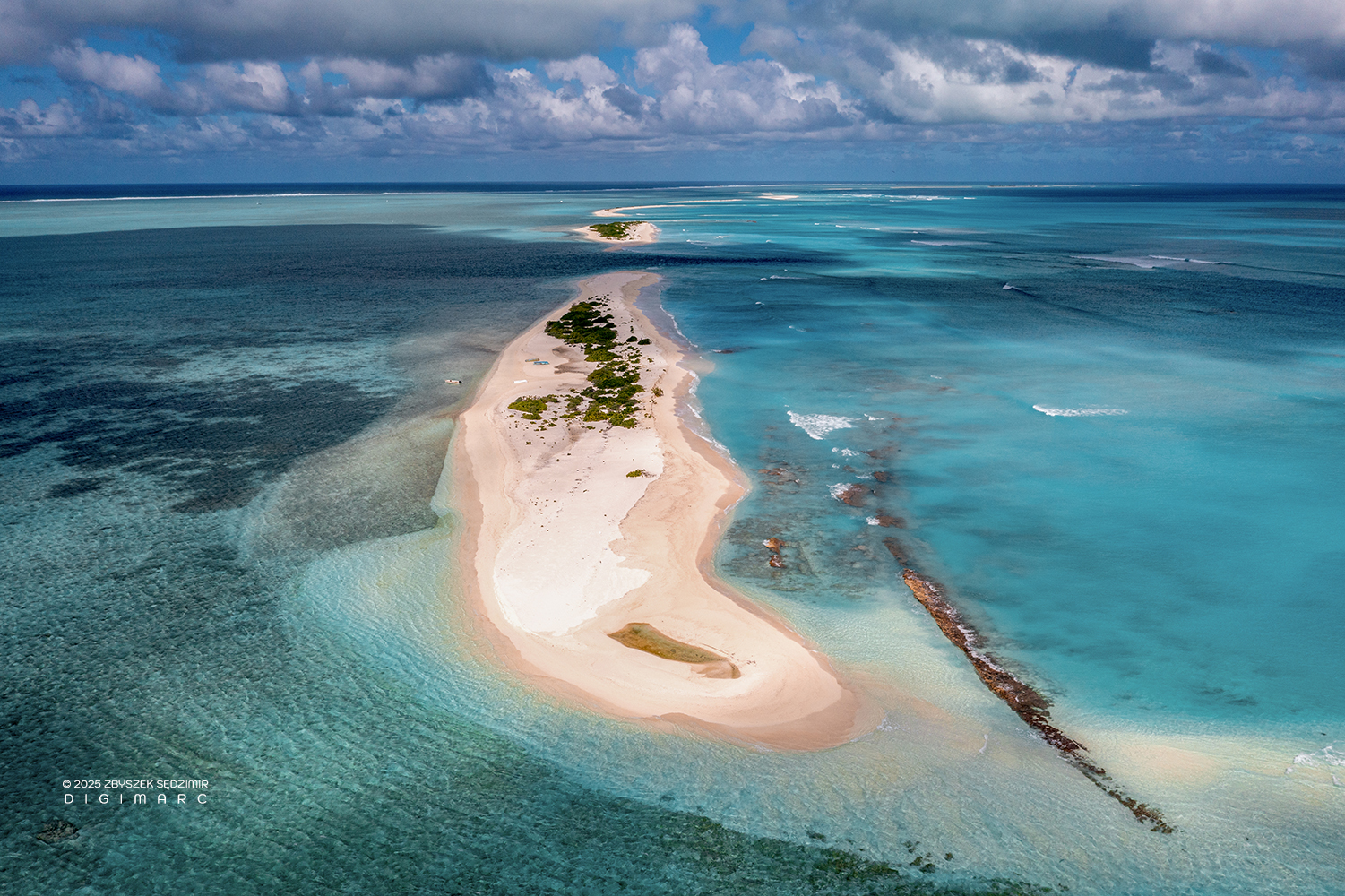 Here we have the northern tip of the Saint Brandon archipelago, sitting a little closer to the equator than its southern counterpart. In the foreground lies Raphaël Island, home to a small fishing base. In the background, Poulailler Island appears on the left, while Puits à Eau Island rests on the right. This photo was taken early in the morning—just the right time to catch the world as it wakes up.