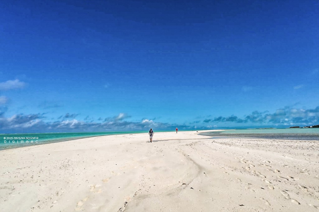 The island is almost entirely barren, with virtually no vegetation. It’s made up of fine sand the color of cantaloupe melon, creating a stunning contrast against the turquoise waters of the lagoon.